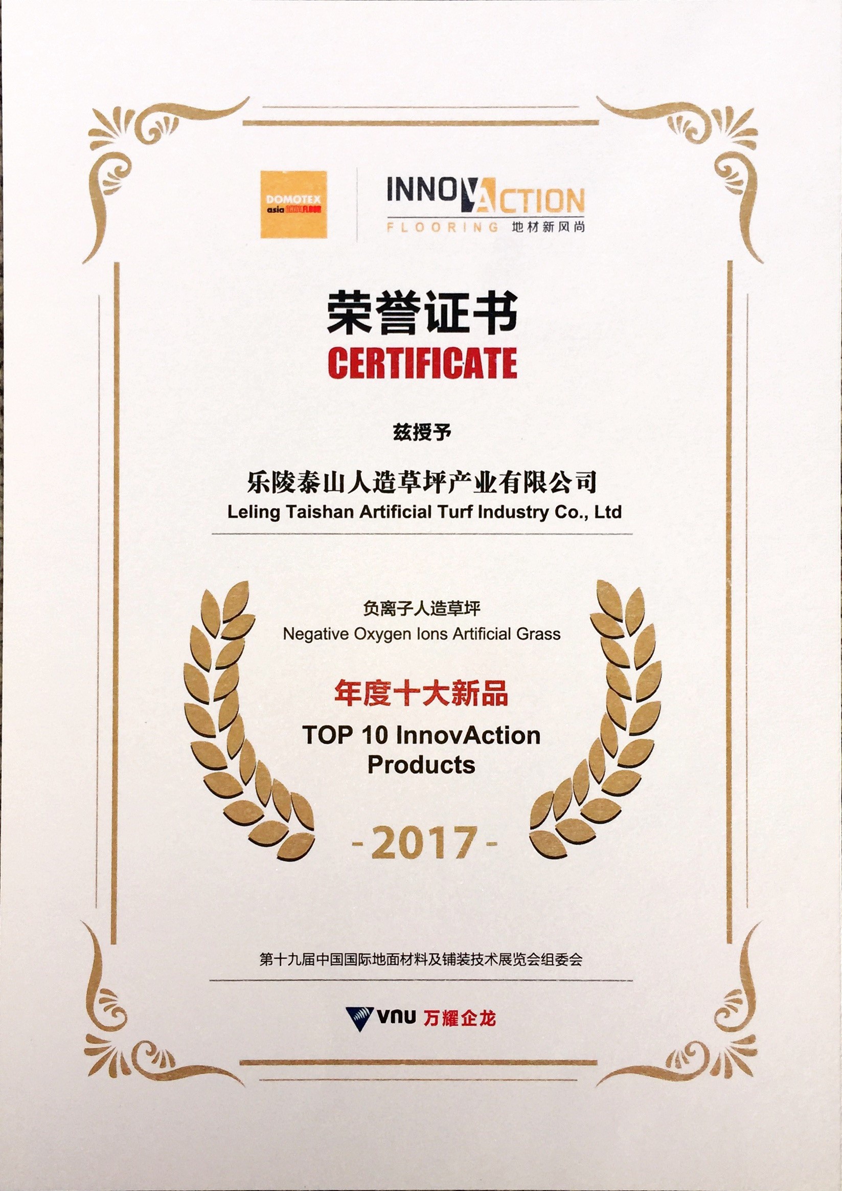 乐陵星空集团人造草坪产业有限公司负离子人造草坪年度十大新品2017